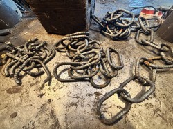丸太の所の太いチェーンは、長くてがっしりとしたものがないため、新品の鉄筋を曲げて溶接して製作しました。