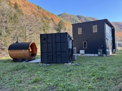昨年から引き続き泊まり込みで宿泊施設の外構工事。