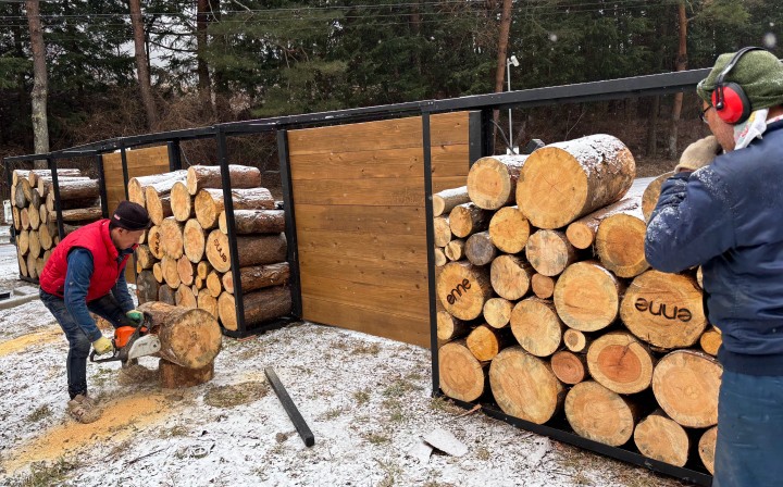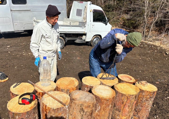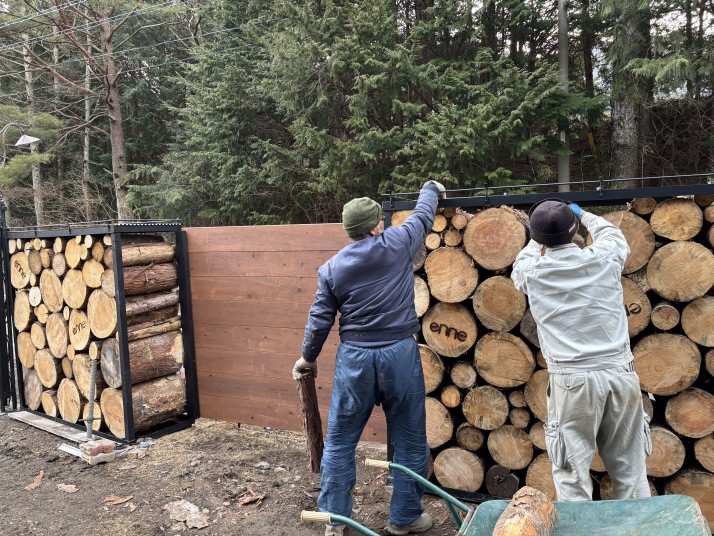 今回のなん十トンもの丸太も切り出して、kouya氏の希望の長さに全て切っておいてくれました。